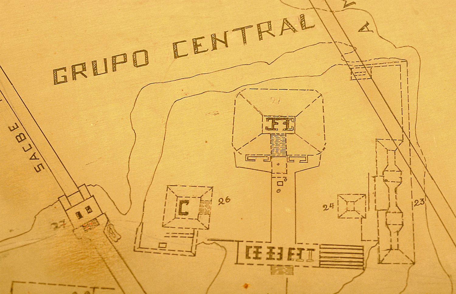 Detail of 1968 INAH map, arch and sacbé at left.     Jan. 2002