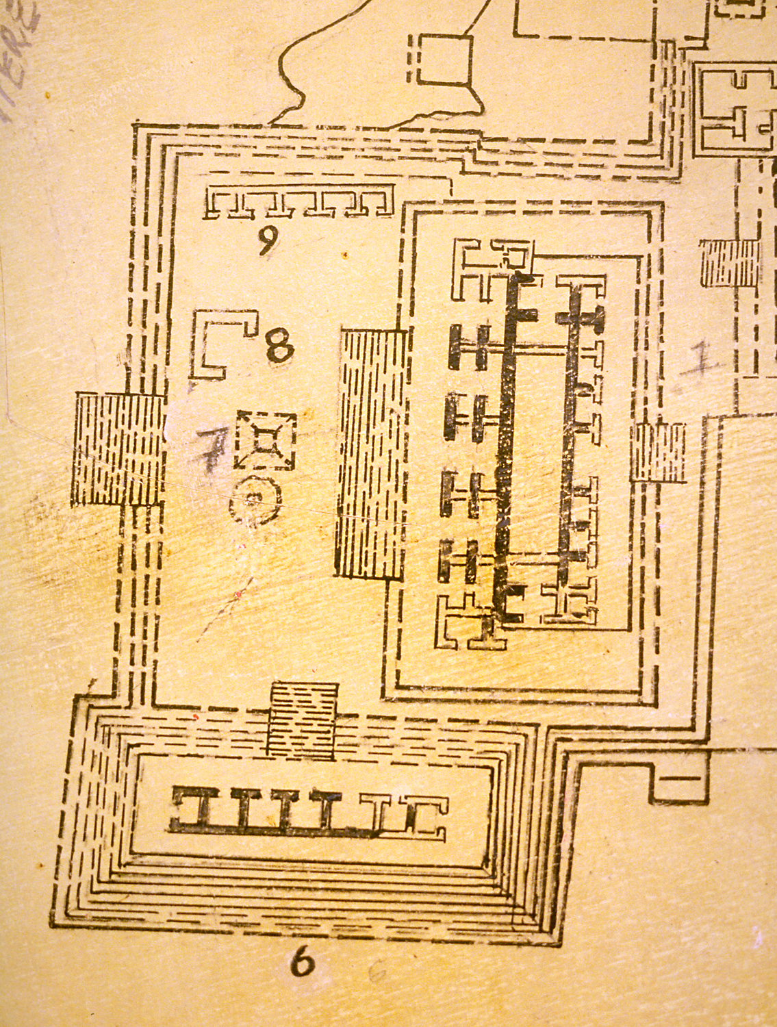 Detail of map at left; showing Codz Poop structure with 5 front doorways, leading to, in pairs, 5 front rooms and 5 back rooms.      Jan. 2002