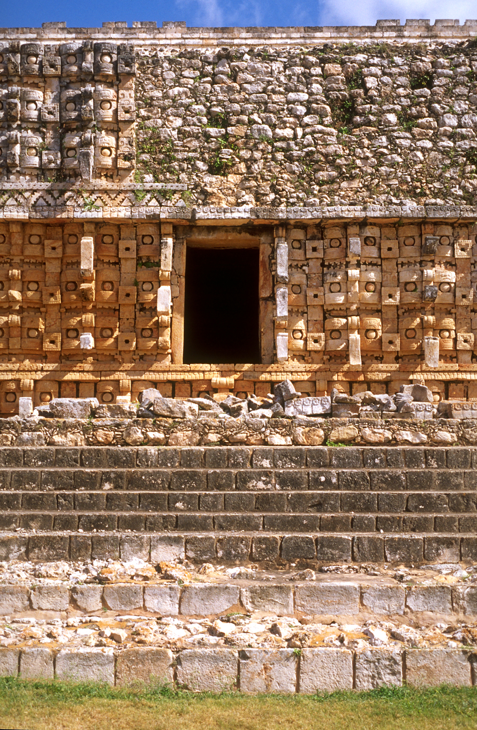 2nd from left of original 5 doorways; upper and lower levels and medial molding at left of doorway survive largely intact.       Jan. 2002