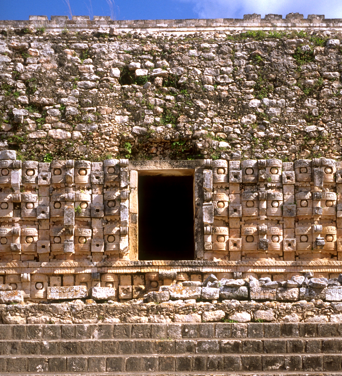 4th of original 5 doorways; masks in doorway level share ear ornaments with adjoining mask, whereas masks in base each have their own 2 ear ornaments.       Jan. 2002