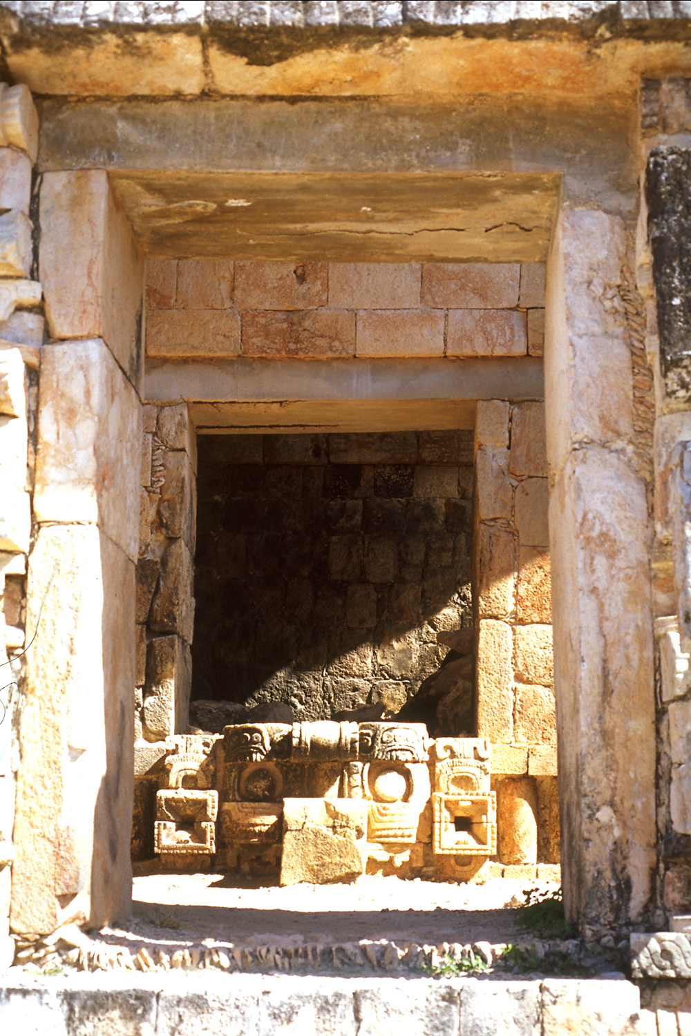 Looking through restored outer doorway to back doorway and into back room; both doorways have modern reinforced concrete lintels.   Jan. 2001