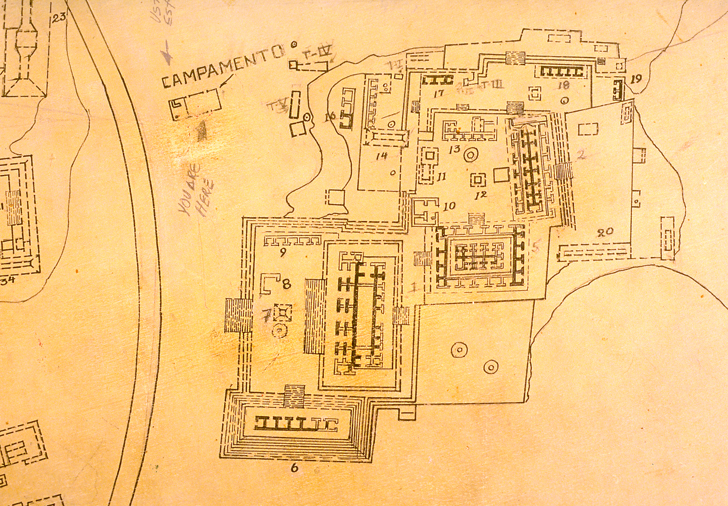 Detail of East Group of 1968 INAH map.       Jan. 2002