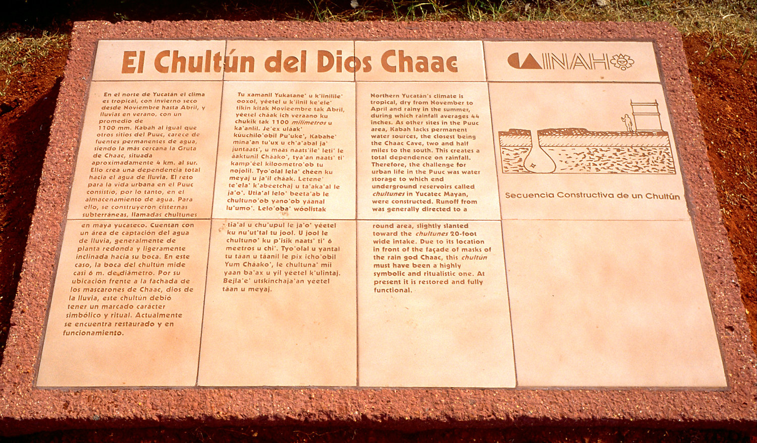 INAH plaque for chultune in photo at left.       Jan. 2001