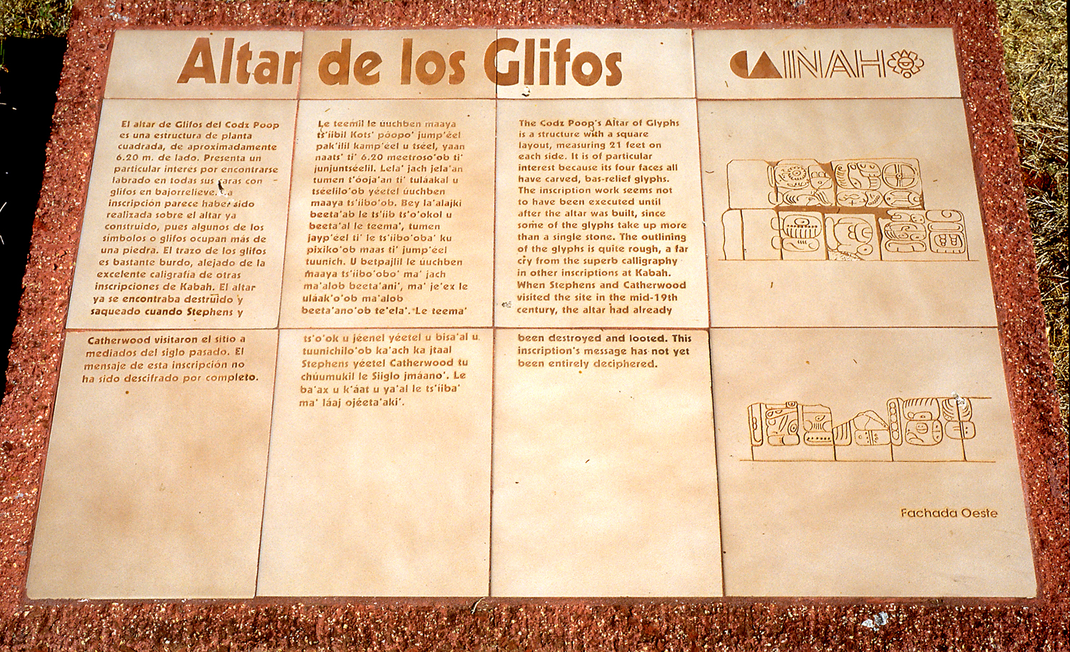 Altar of the Glyphs, INAH Plaque       Jan. 2003