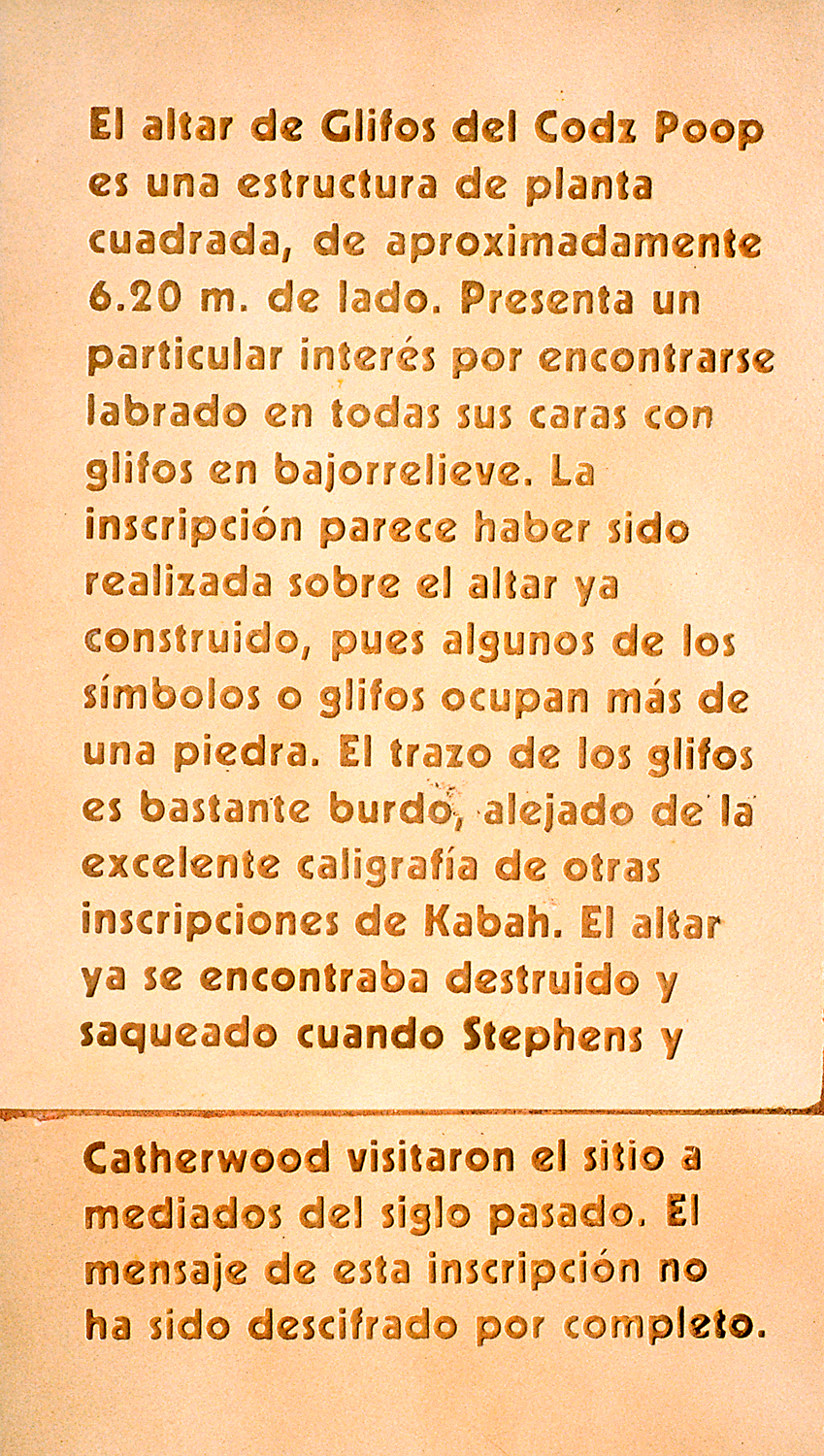 Detail of INAH plaque above-center; Spanish description.