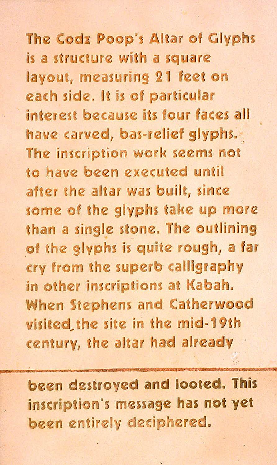 Detail of INAH plaque above-center; English description.   Jan. 2003