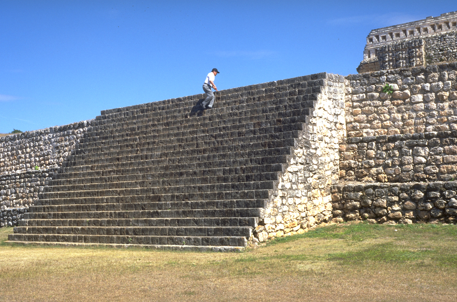 Local guide climbing same staircase on the diagonal, much the easiest method.       Jan. 2001