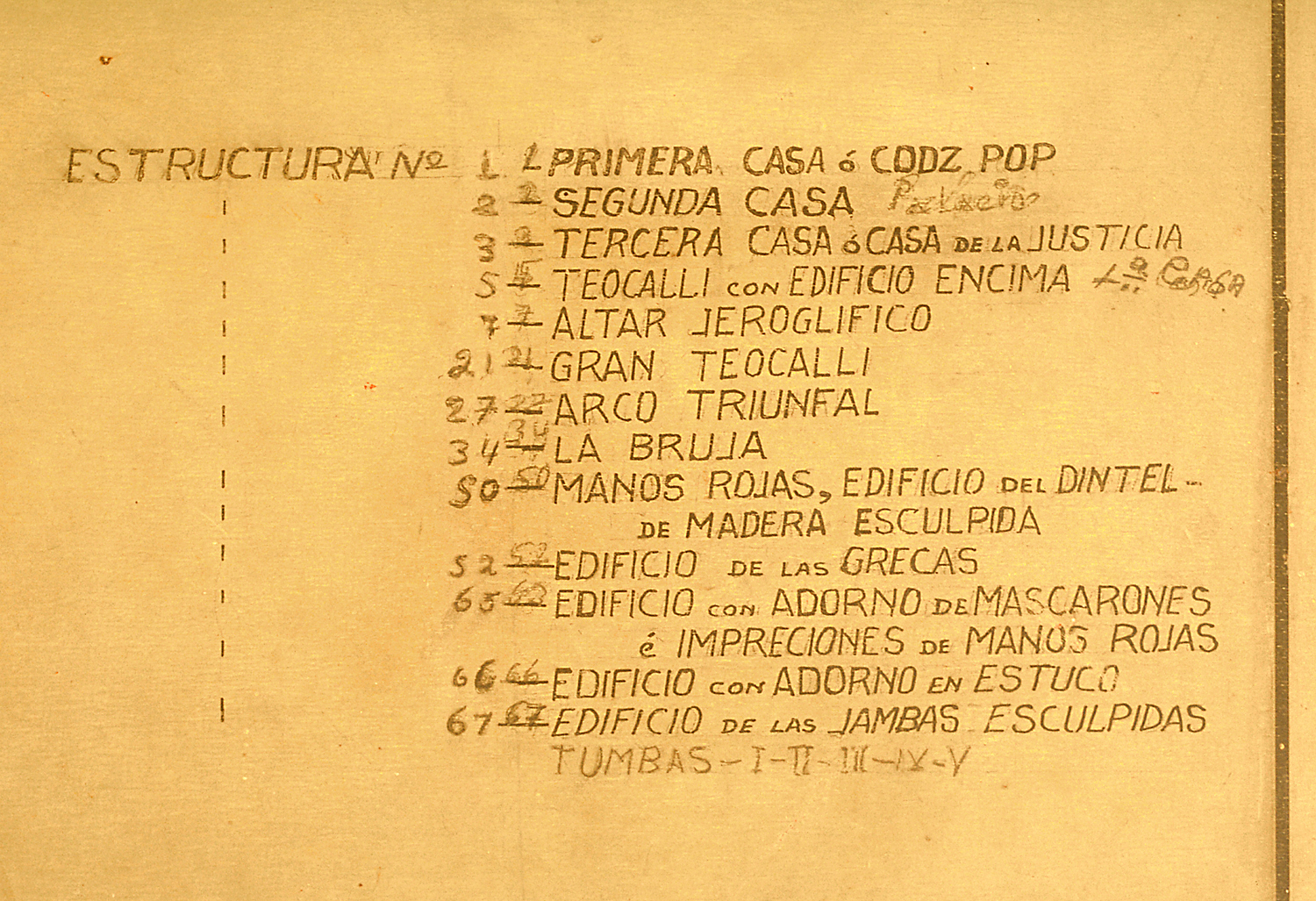 Numbered list of the major structures at Kabah.      Jan. 2002