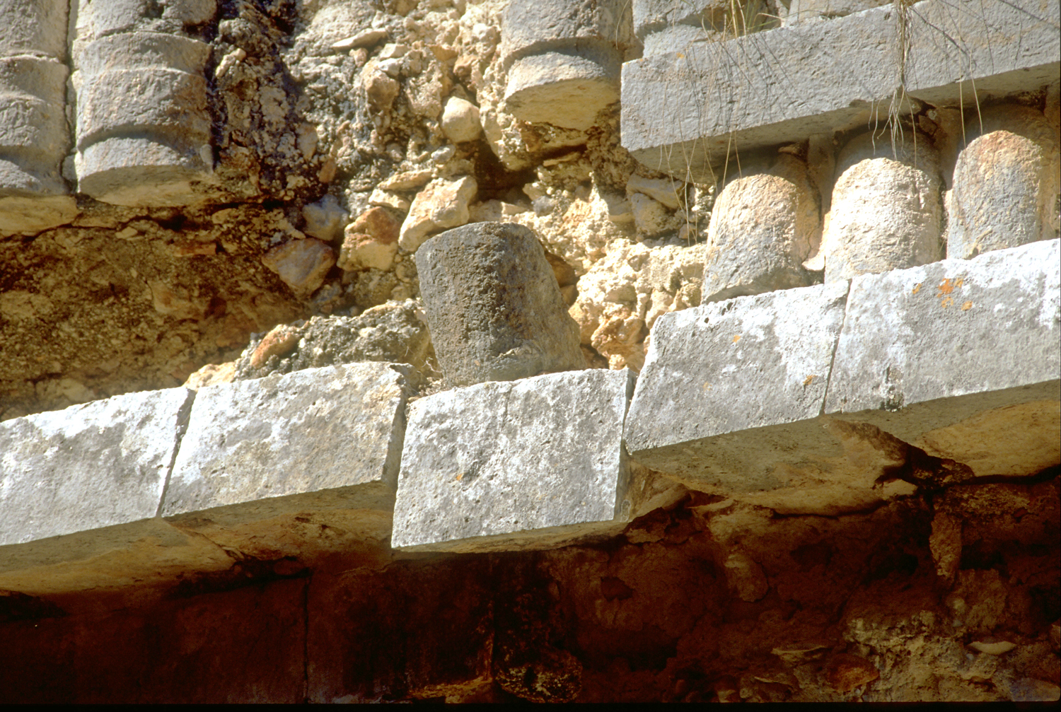 Showing that collapsing stone of medial molding is tenoned into wall. Jan. 2001