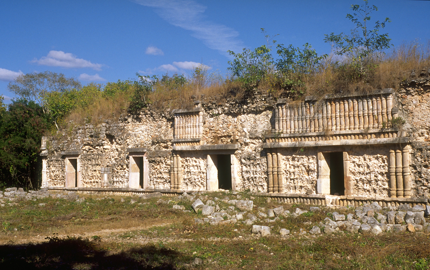 Left four doorways of front facade; most of facing stones fallen or removed.      Jan. 2001