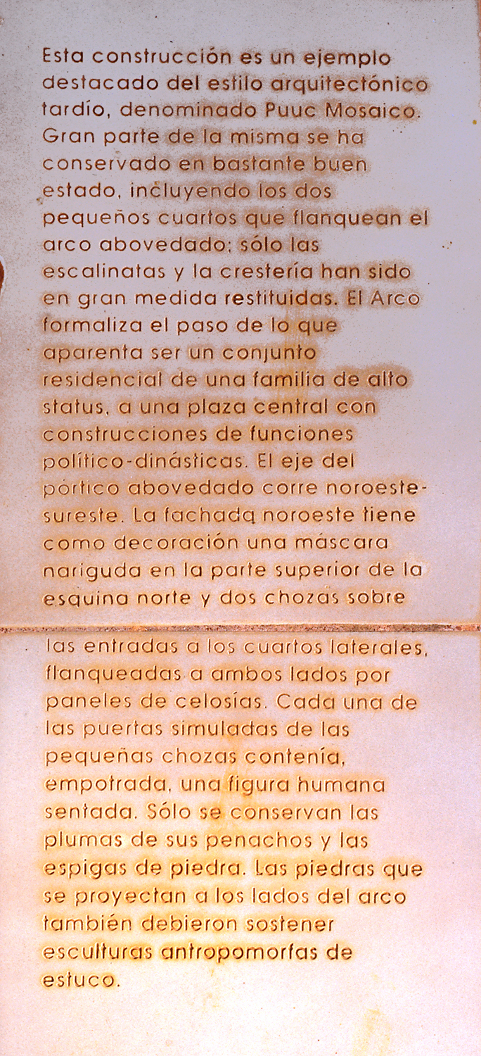 Detail of INAH plaque above; Spanish description.       Jan. 2003
