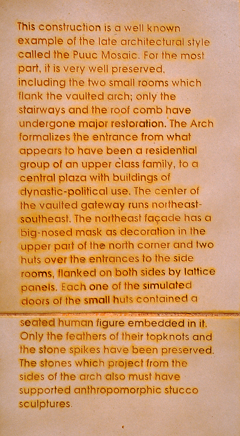 Detail of INAH plaque above; English description.       Jan. 2001