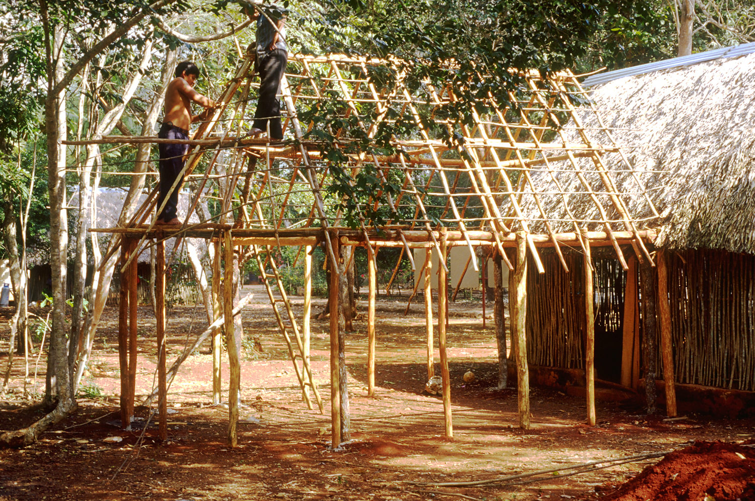 Constructing frame for rear addition; supported by vertical posts.  Jan. 2002