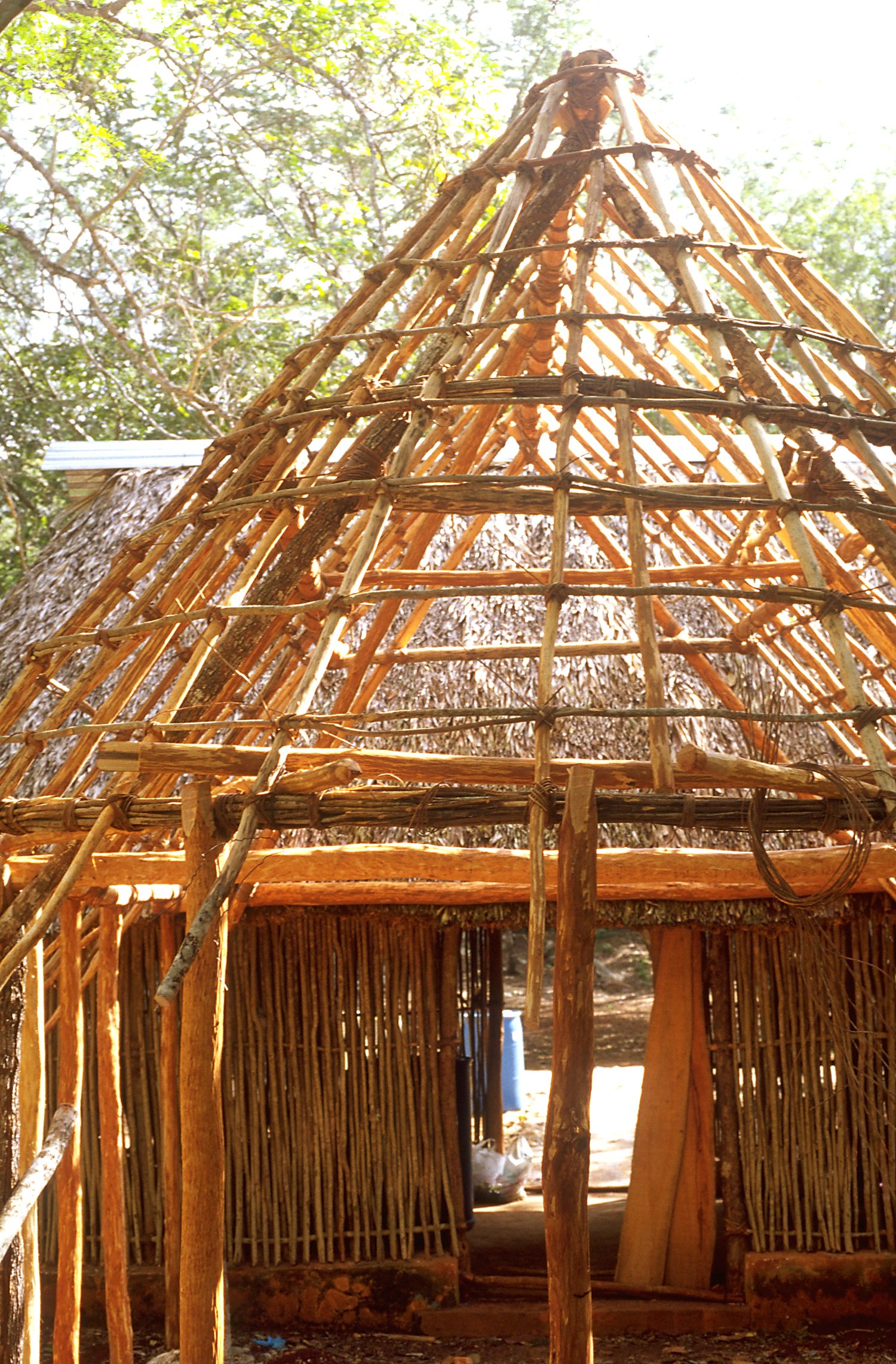 Looking from end of rear addition through doorways (back and front) of main house in front.      Jan. 2002