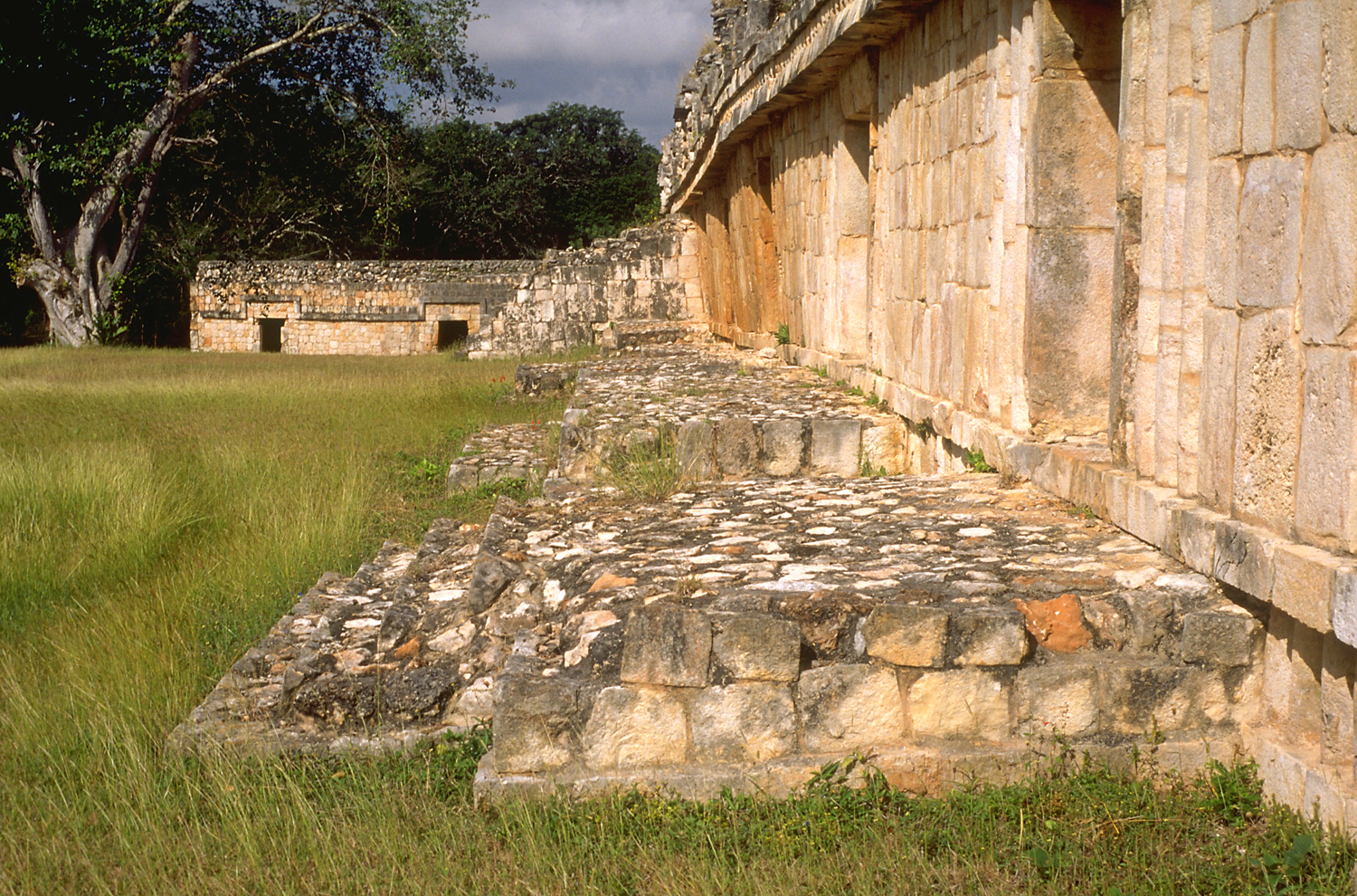 Looking northwest along front of east structure, showing stoops in front of doorways.       Jan. 2002