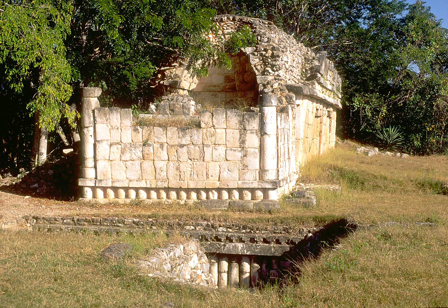 End of east structure, showing collapsed vault, top of exterior staircase in foreground.      Jan. 2002