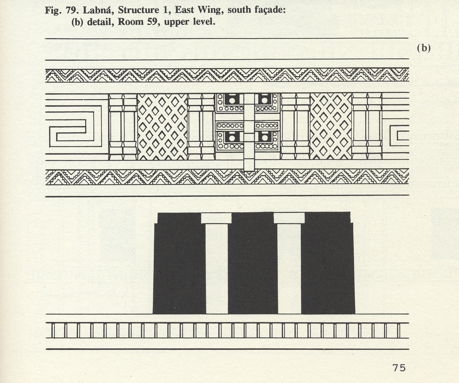 Scanned from George F. Andrews, Pyramids and Palace, Monsters and Masks; Vol. 1, Architecture of the Puuc Regions and the Northern Plains Area, 1995, p.75. Reproduced with permission of Labyrinthos, publishers.