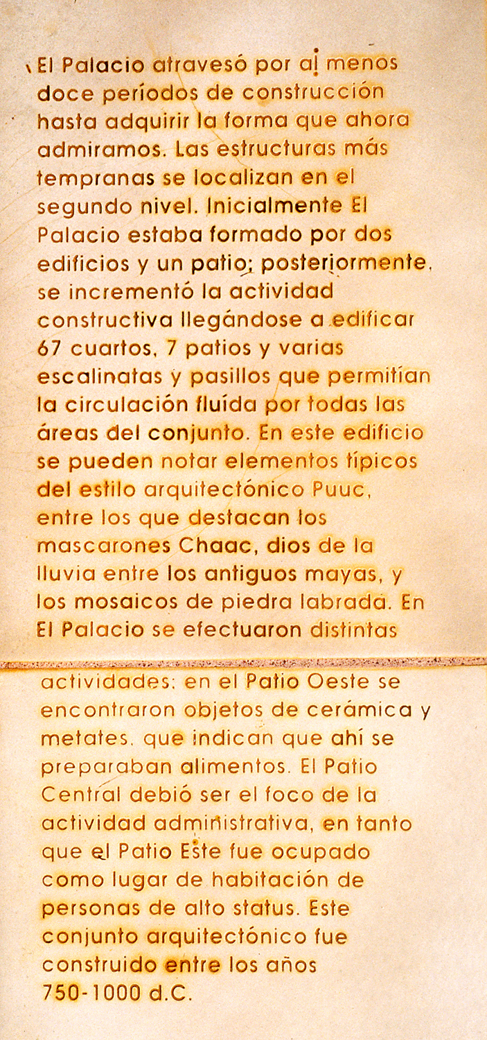 Detail of INAH plaque above; Spanish description.       Jan. 2003