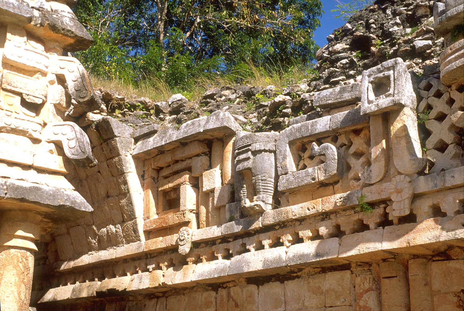 West facade of east structure, with lower half of human figure.