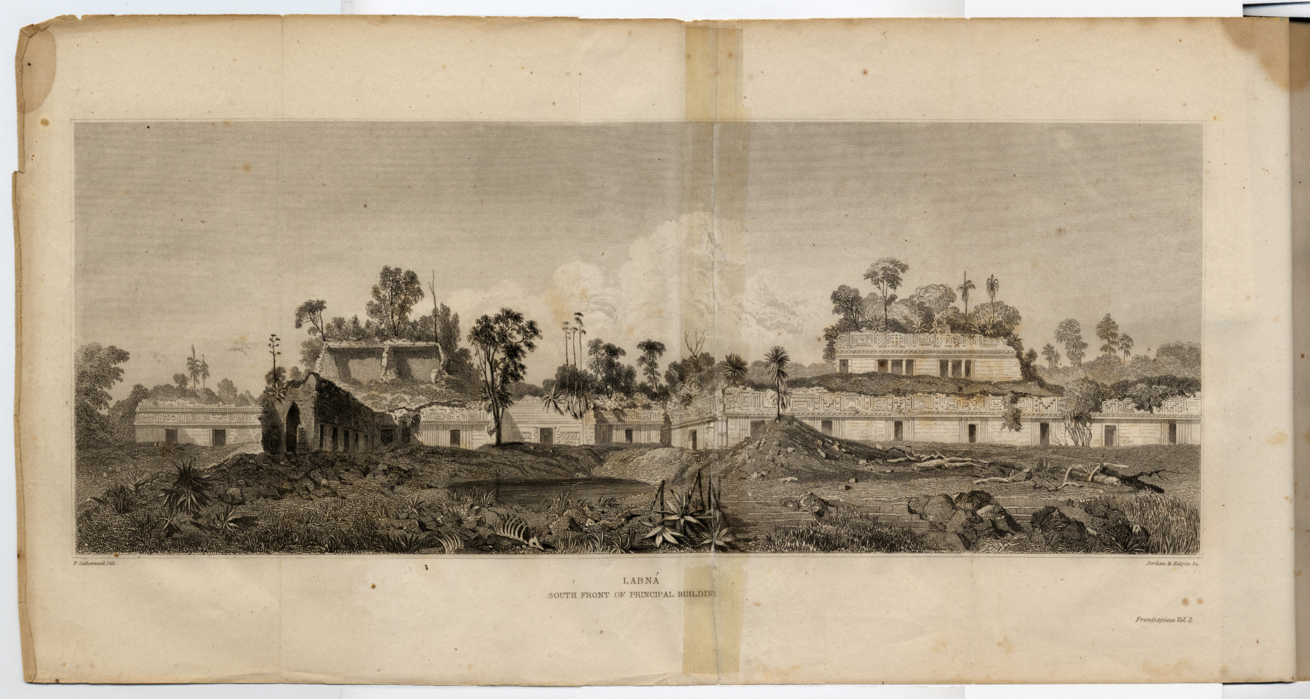 1843. "Labná, South Front of Principle Building / F. Catherwood Del., Jordan & Halpin Sc."
