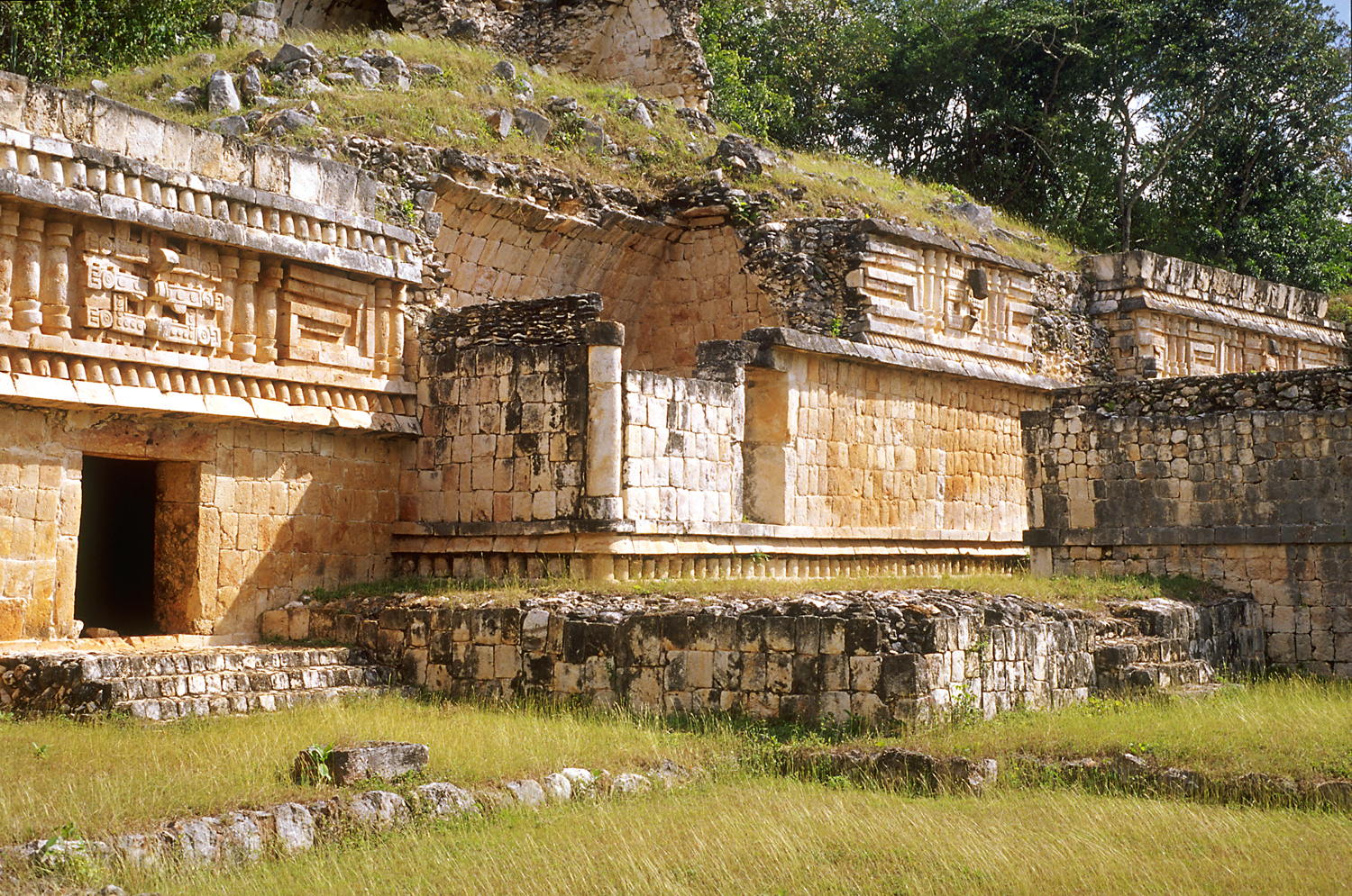 Angle view of section in photo at left. West section at left; at center a structure on platform; at right the end of the south wing.       Jan. 2002