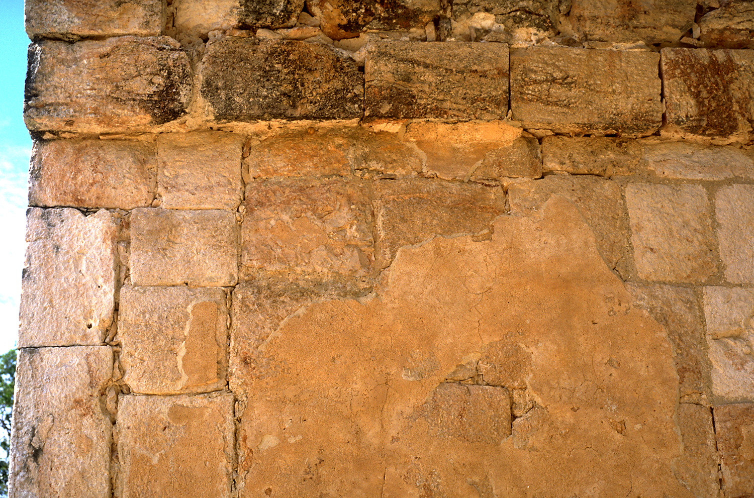 Kabah arch, remains of original plaster on inside of passageway.           Jan. 2001