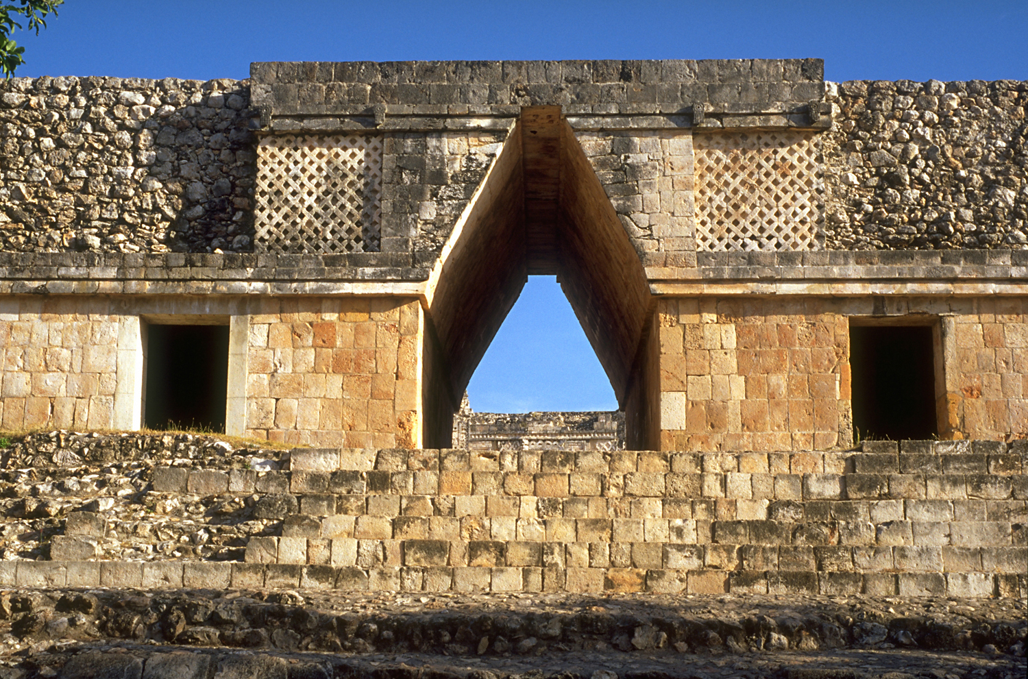 Main entrance to Nunnery Quadrangle, looking from outside in; facade at left of archway and room to left much restored.