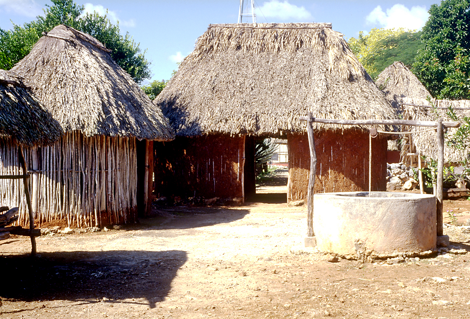 West of Muna. Model "House of the Yucatan Peasant," with courtyard, well, and other structures; constructed behind store-restaurant.       Jan. 2001