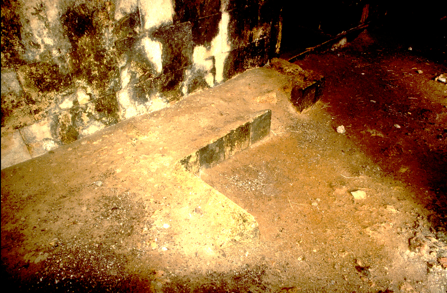 Detail of bench in photos at left.       Jan. 2003 (24mm lens, flash)