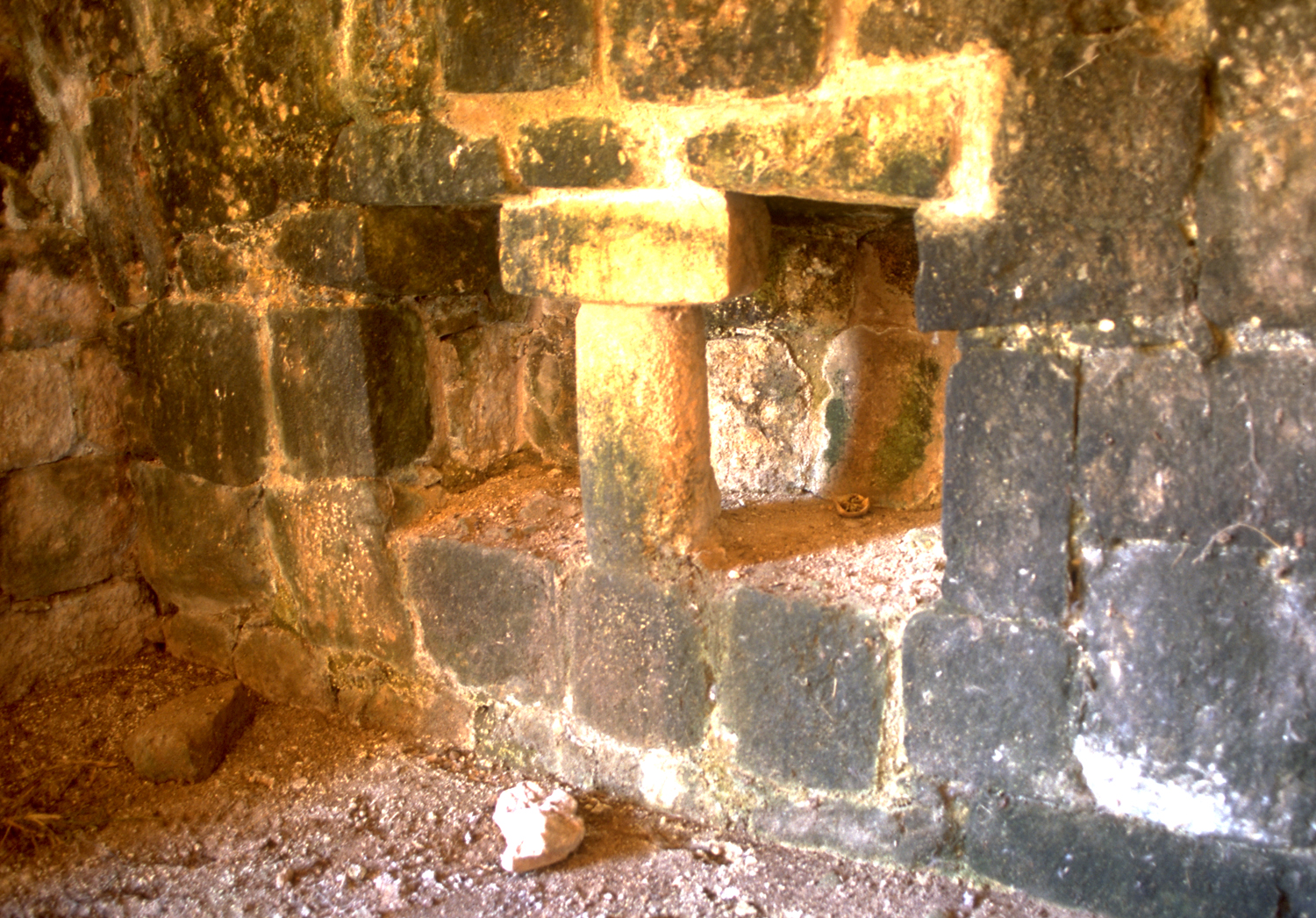 Great Palace, Ground Level of West (left) side, Central Room; showing niche in end wall.       Jan. 2003 (24mm lens)