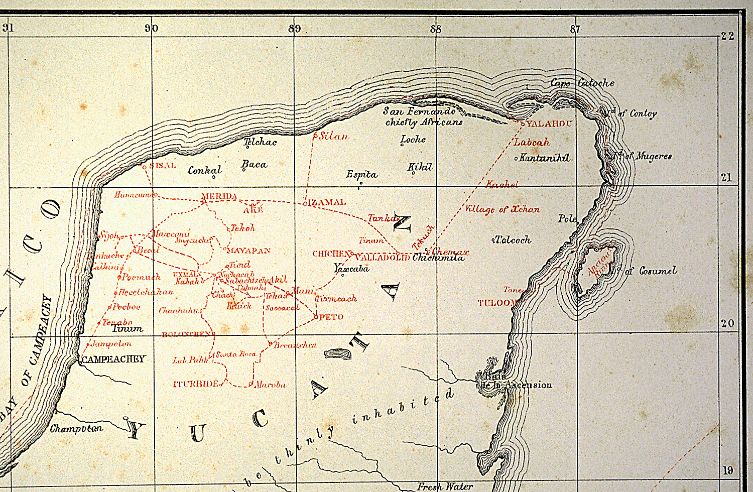 Detail of map at left.     Scanned from a 35mm slide taken from the copy in the AMNH (RF-13-K). Reproduced Courtesy of The Library, Special Collections, American Museum of Natural History.
