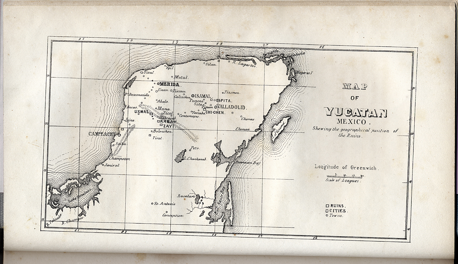 1843. Norman. "Map of Yucatan, Mexico. Shewing the geographical position of the ruins."
