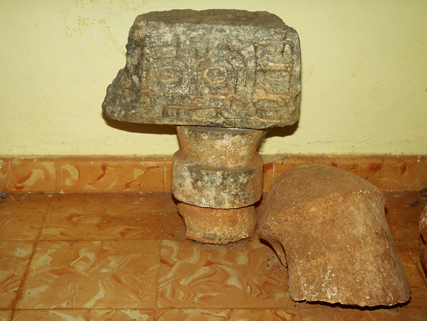 Horizontal stone with Tlaloc image.       Jan. 2001 (flash)