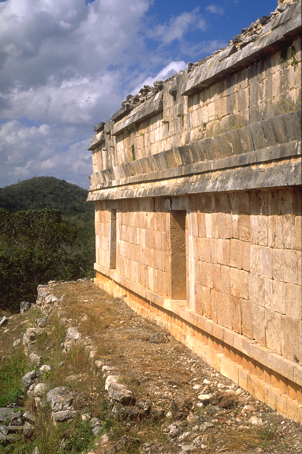 Upper level, looking west along front wall, restored, narrow platform.      Jan. 2002