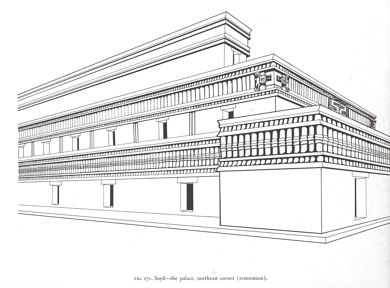 "Sayil-the palace, northeast corner (restoration)" - (this is northwest corner, not northeast).