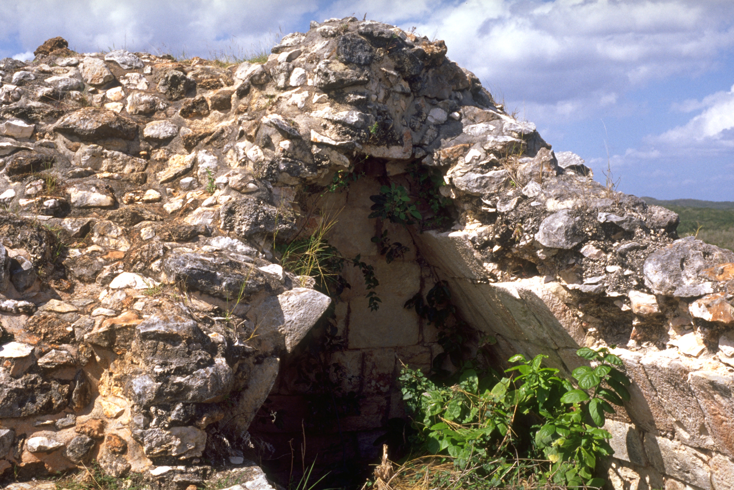 Remains of collapsed vaulted room on upper level.       Jan. 2002