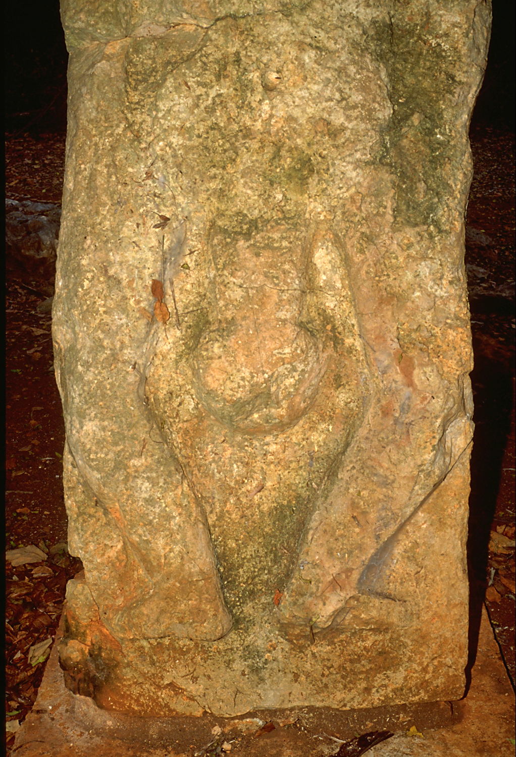 Lower body with bent legs, feet facing to sides, and abnormally large phallus.       Jan. 2001 ( flash)