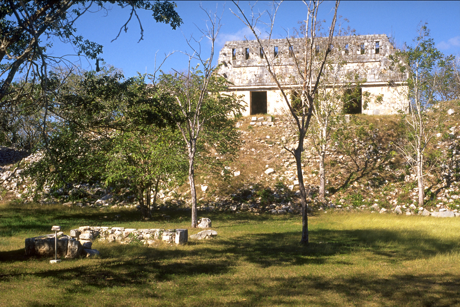 smaller structures, now largely collapsed, beside the restored