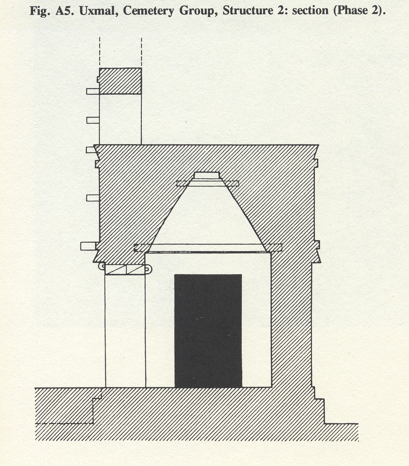 "Uxmal, Cemetery Group, Structure 2: section (Phase 2)."