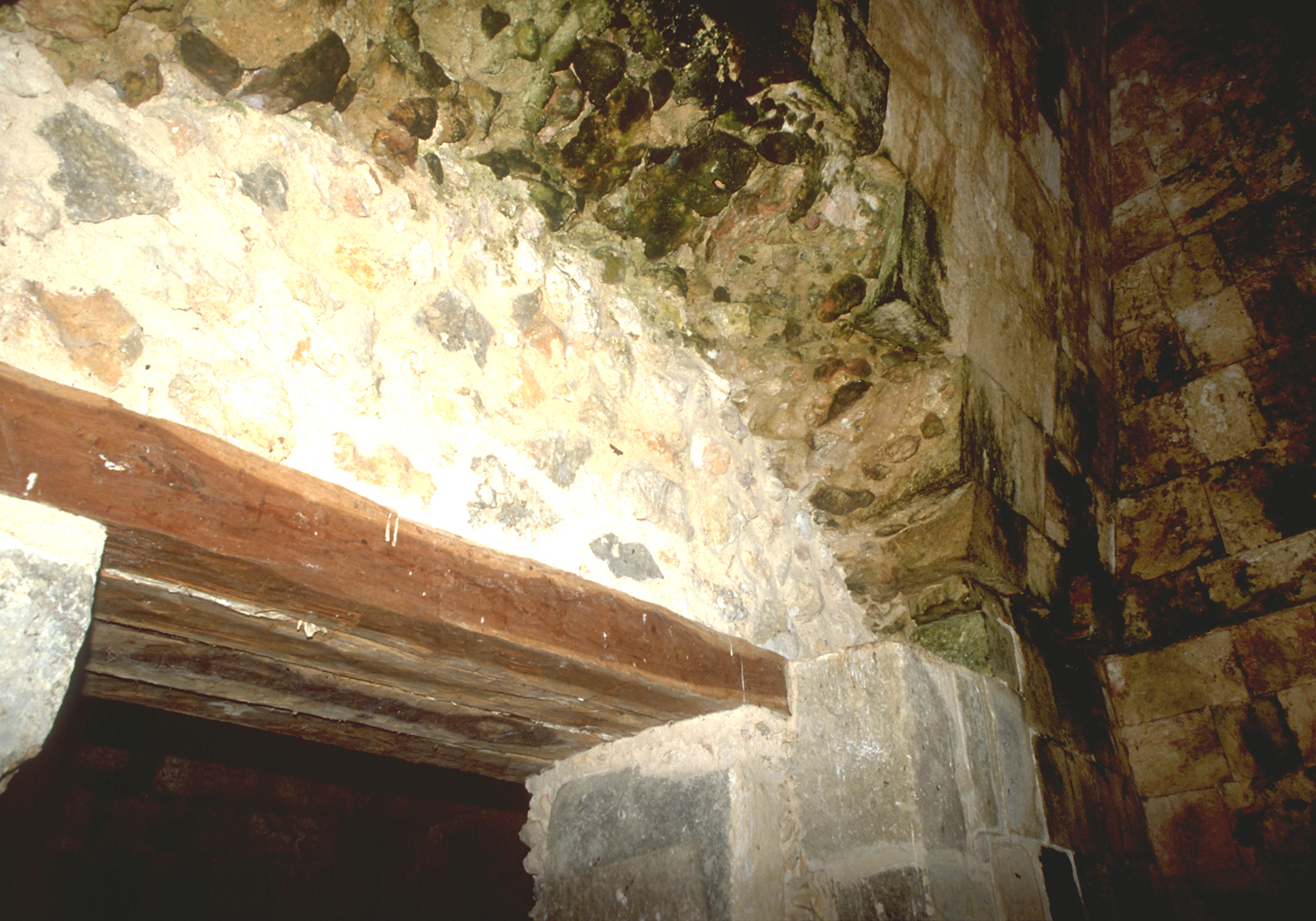 Showing restoration of collapsed vault above lintel and new wooden lintel.