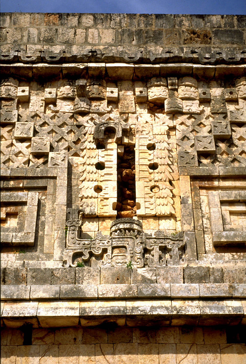 (missing) in center of frieze of north wing; circular holes