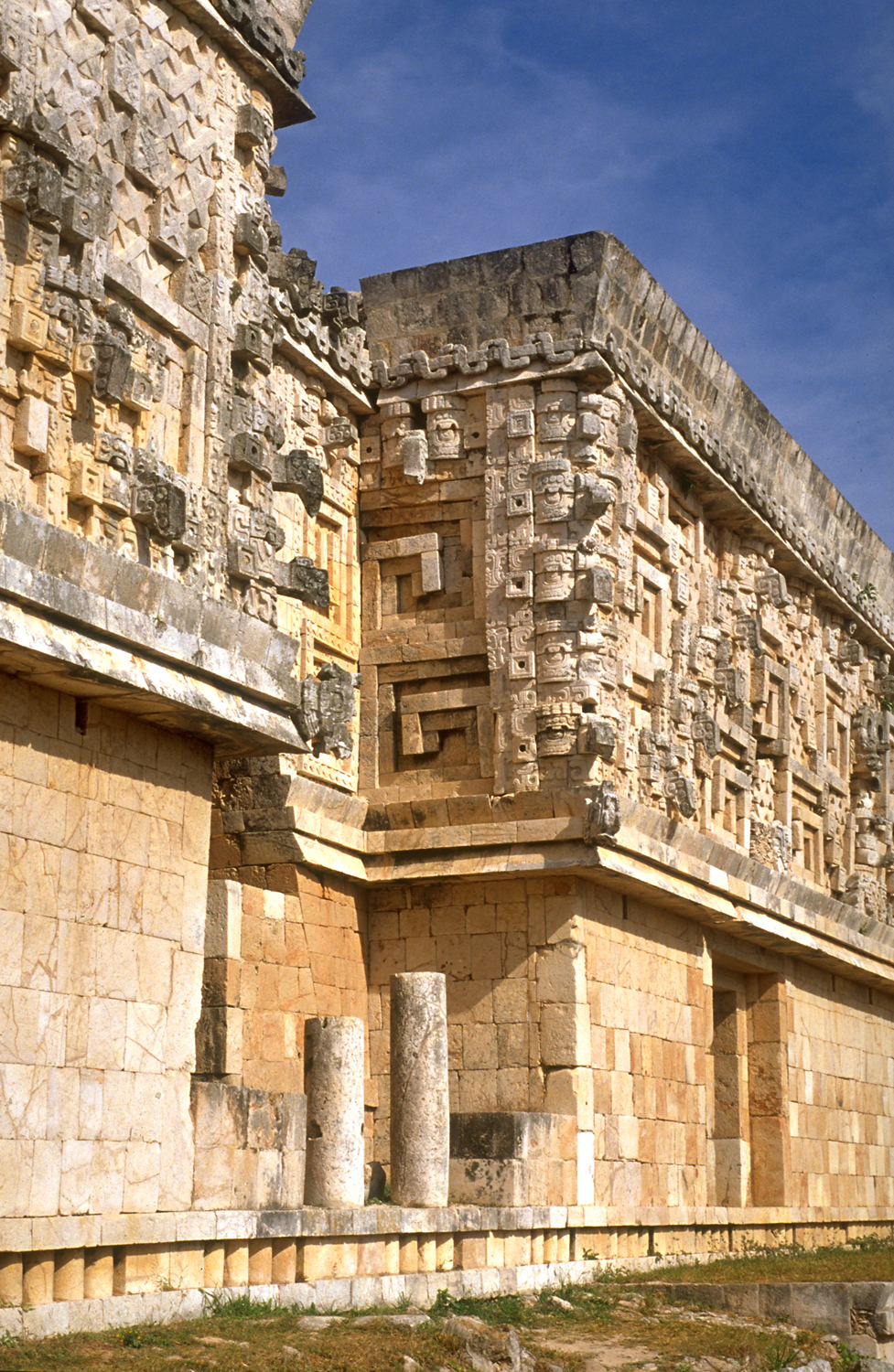 This passageway was originally open with no columns. They were added later by the Maya when the passageway was closed and turned into rooms. The columns later fell and were replaced as part of mid-20th century restoration. Jan. 2001