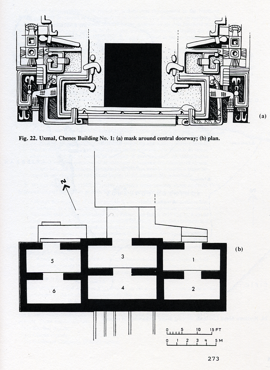 Scanned from George F. Andrews, Pyramids and Palace, Monsters and Masks; Vol. 1, Architecture of the Puuc Regions and the Northern Plains Area, 1995, p. 273. Reproduced with permission of Labyrinthos, publishers.