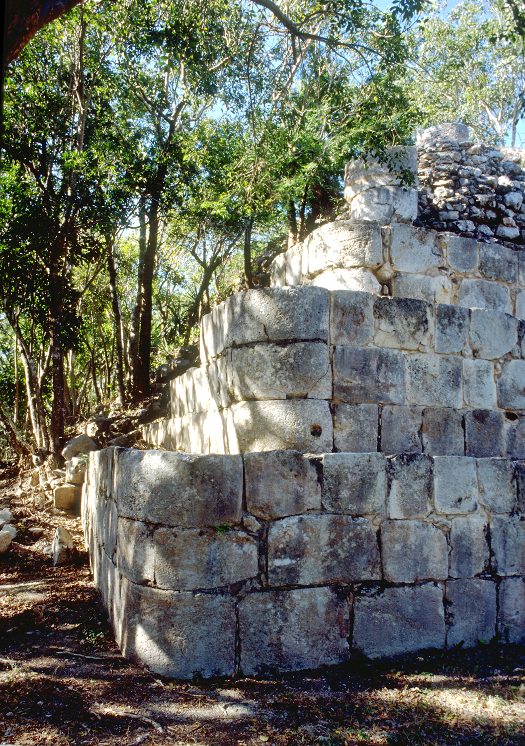 Northeast corner, showing that original builders used stone wedges to fill the irregularities between crudely shaped stones. Jan. 2002 (24mm lens)