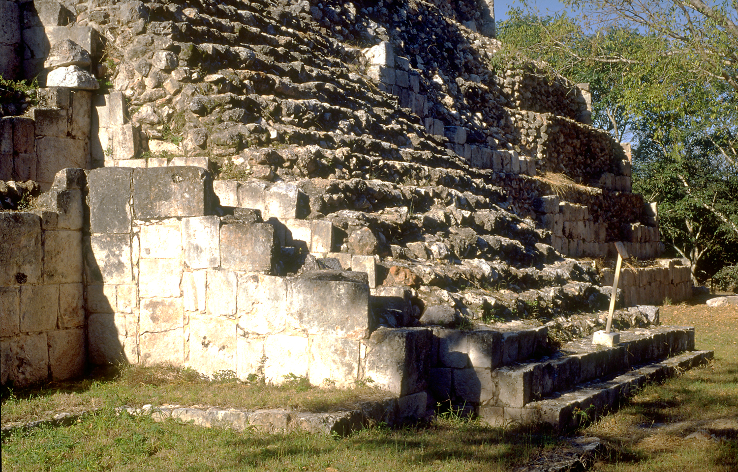 East side of staircase to House of the Turtles; portion of earlier house foundation in foreground. Jan. 2001