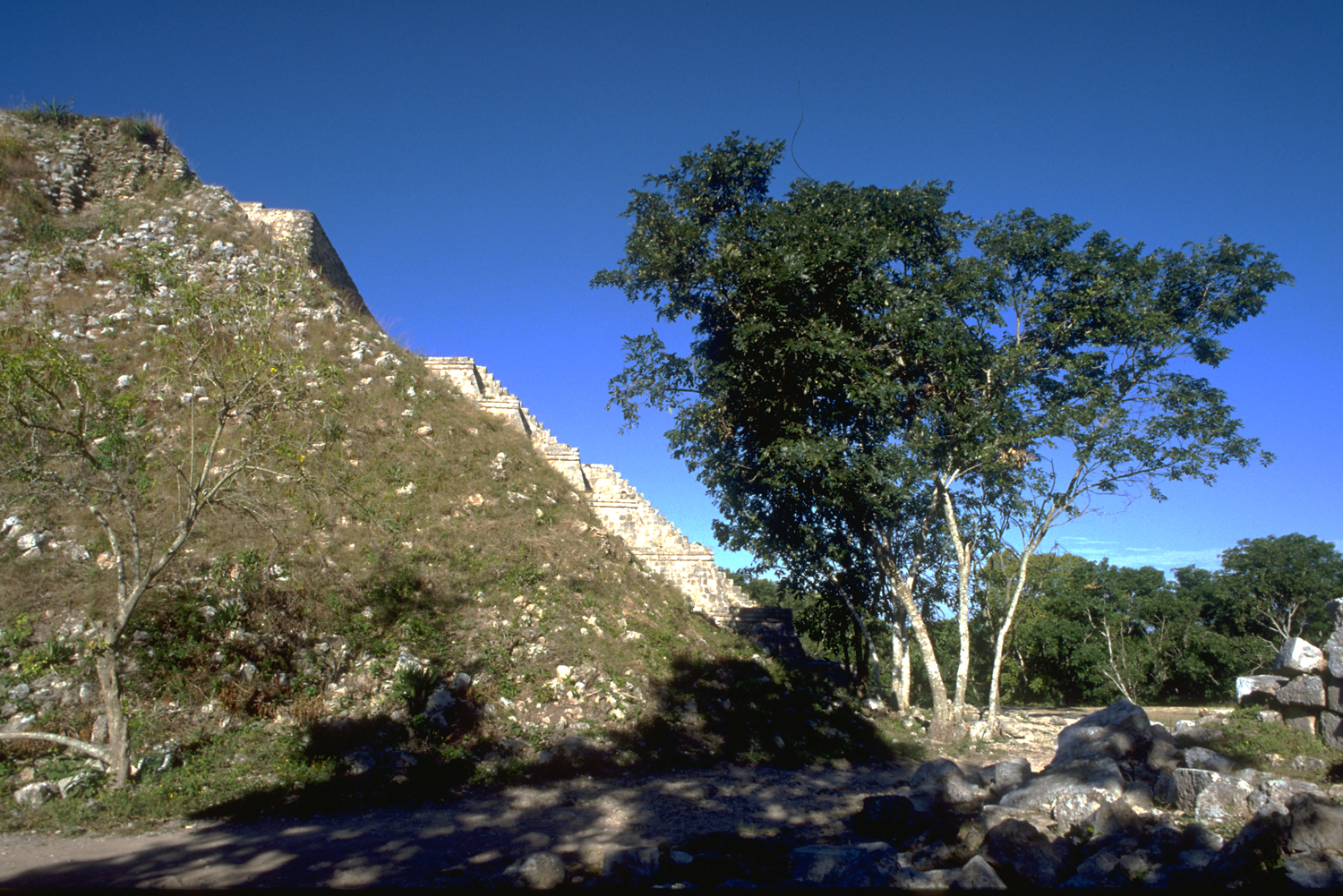 Profile of restored grand staircase, with unrestored pyramid mound.