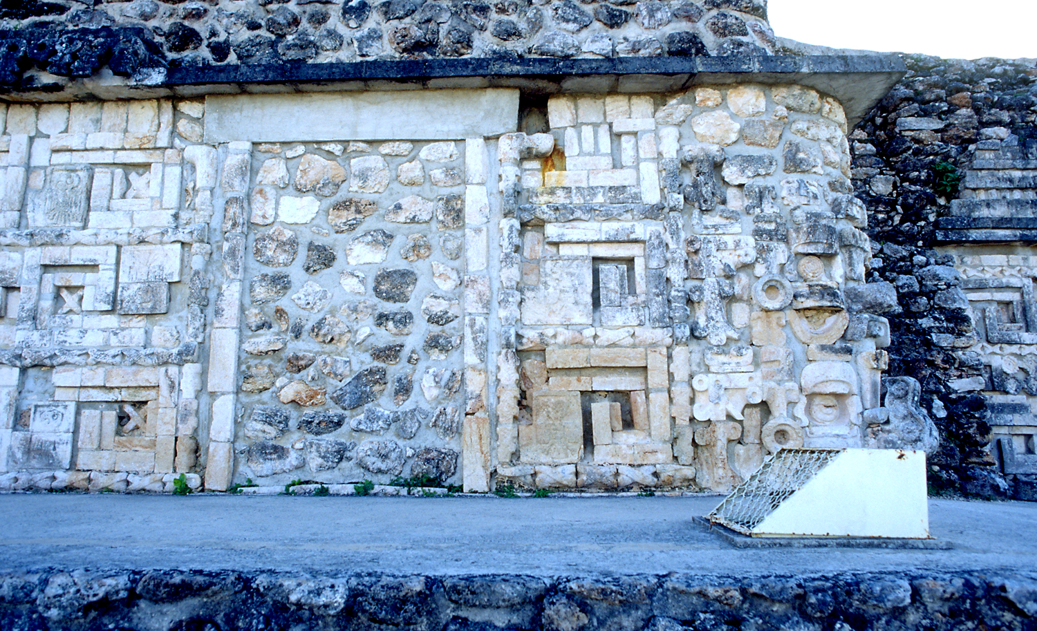 Right end of projecting section of north facade, recessed section behind at right; light fixture for sound and light program.