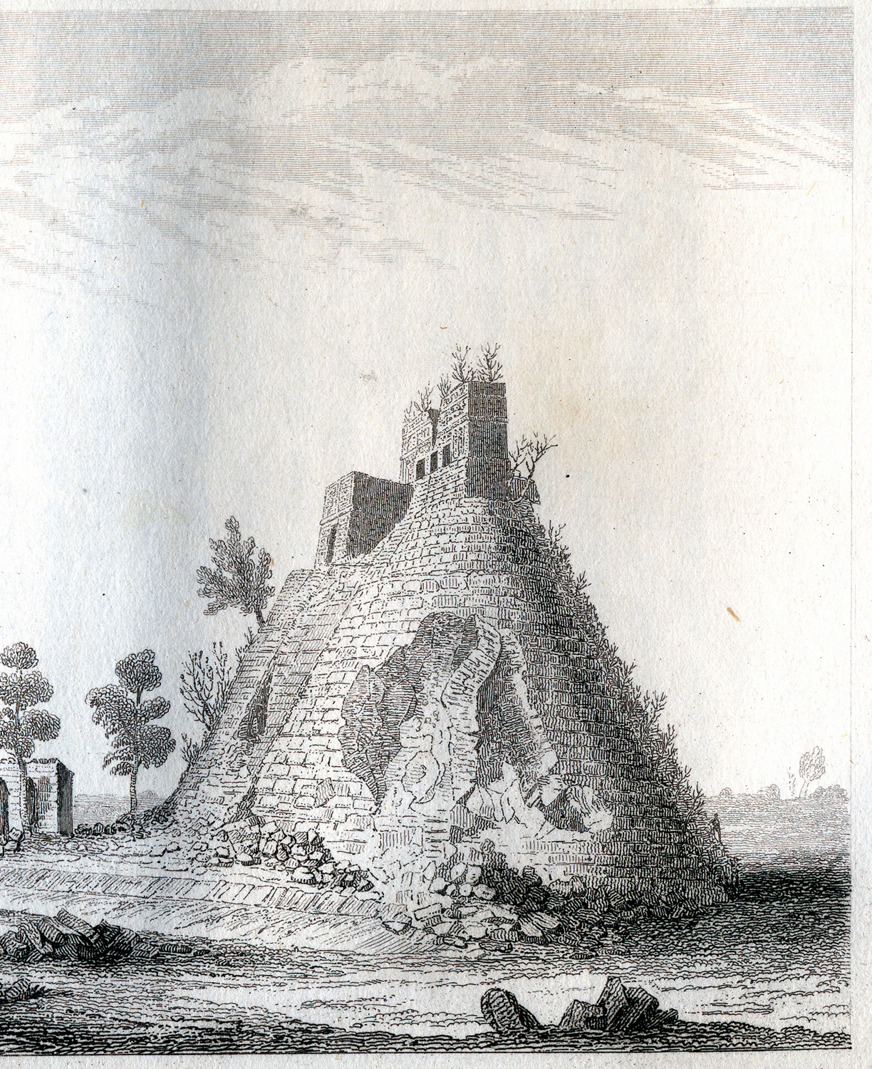 Detail of print at left. Scanned from Stephens, Incidents of Travel in Central America, Chiapas, and Yucatan, 1841; closely based on Catherwood’s 1839 on-site drawing.