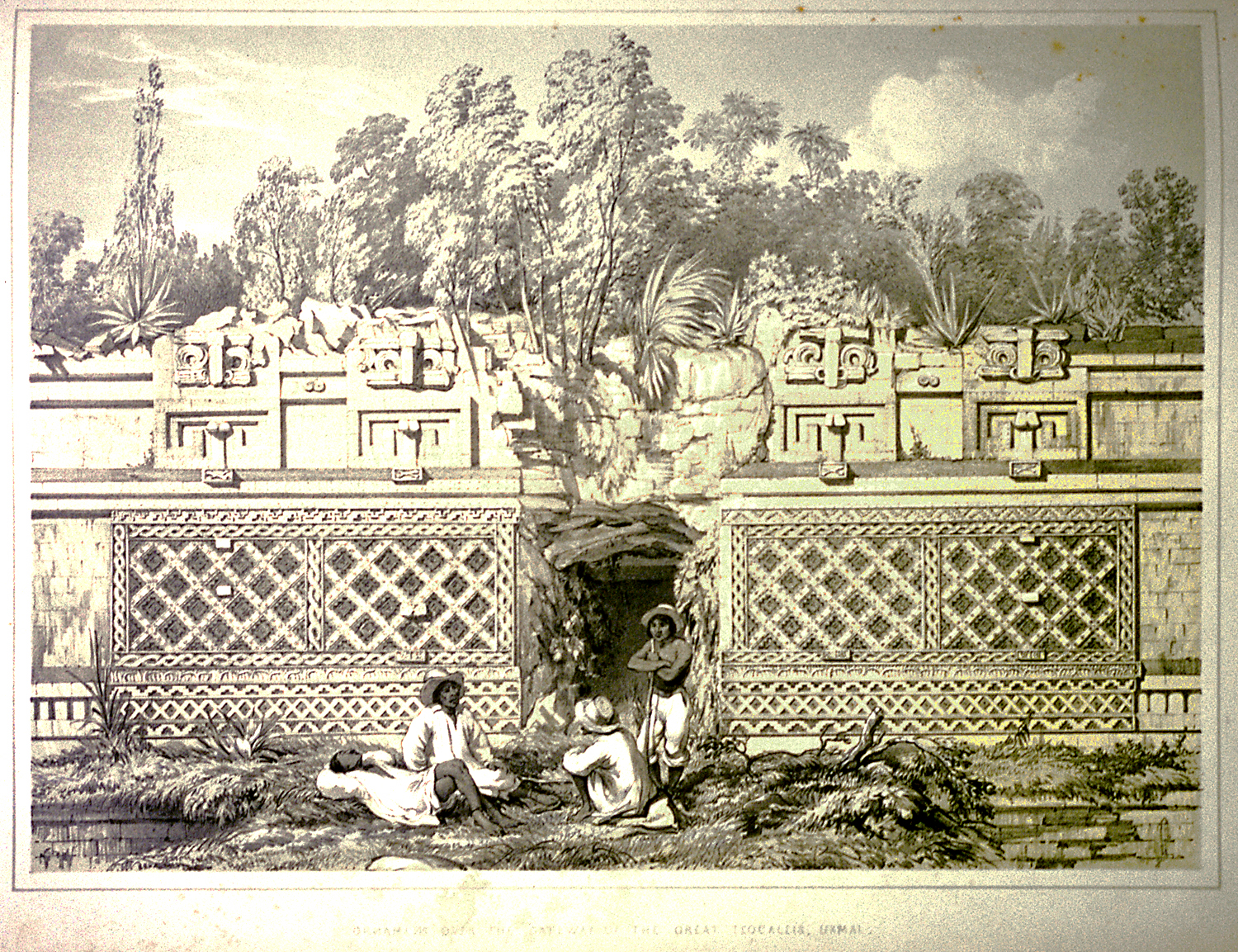 Chromolithograph in Frederick Catherwood, Views of Ancient Monuments in Central America, Chiapas, and Yucatan, 1844. Based on Catherwood’s 1839-42 on-site drawing, but for this lavish folio slightly reconstructed and glamourized. This image scanned from a 35mm slide taken from a copy in the AMNH (RF-13-K). Reproduced Courtesy of The Library Special Collections, American Museum of Natural History
