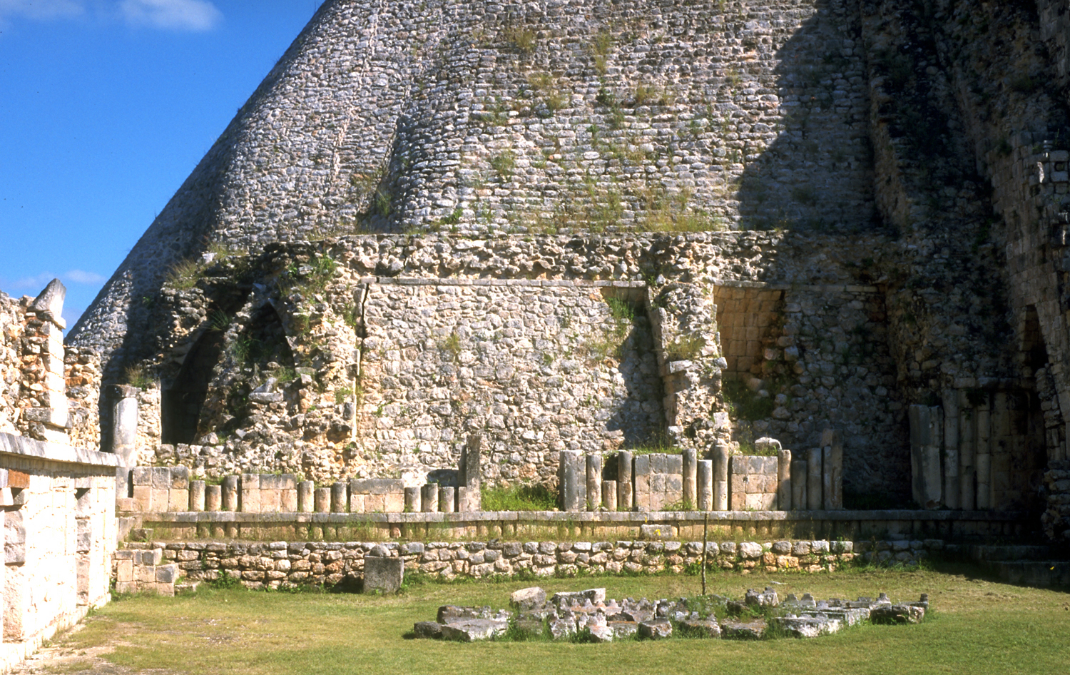West front of Pyramid, north half; this portion of facade of Temple I restored only to discovered height (cf. restoration of south half in photos above). Jan. 2003